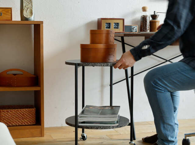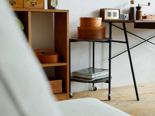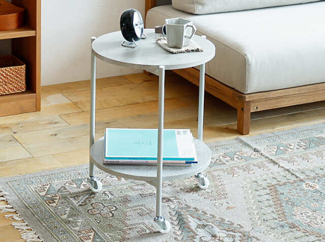 お家にいながら、おしゃれなカフェのような空間を演出してくれるサイドテーブル。ソファーの横に置いて、リビングでゆっくりとカフェタイム♪そんなリラックスできる空間を演出してくれるアイテムですよ。また、壁際に配置して天板にお気に入りの植物や雑貨などをディスプレイするラックとしても活躍するインテリアにもなりますよ。
