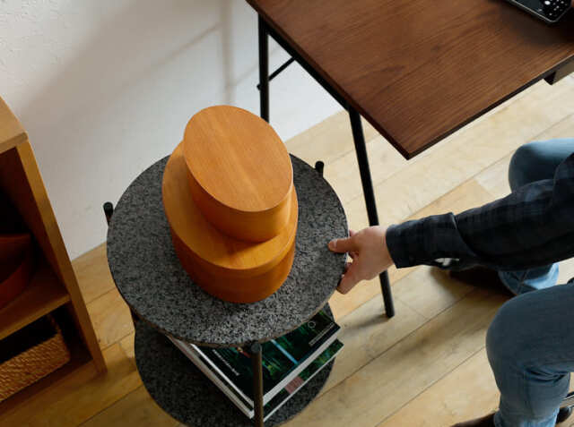 天板の直径は40cmとなっていますので、読みかけの本やマグカップなどを置くこともでき、ノートパソコンを置いてお仕事なんかもできそうなサイズですよ。