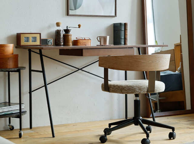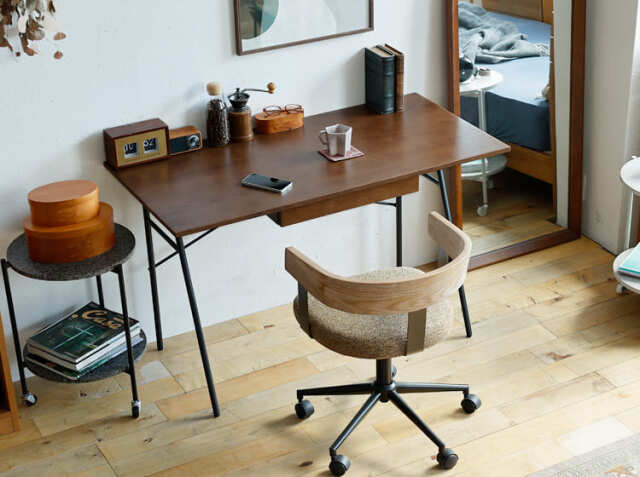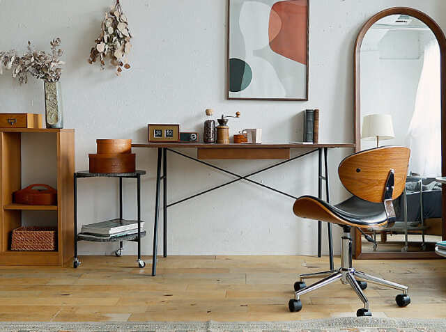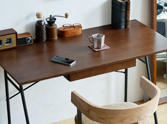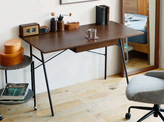 仕事や趣味など、自分の好きなことに没頭するワークスペースや書斎は自分のこだわりを詰め込みたいという方は多いのではないでしょうか。お家の中で書斎として割けるスペースはそれぞれ異なりますが、こちらのデスクは幅120cmサイズ。シンプルなデザインと置く場所を選ばないサイズ感が嬉しいポイントですね。