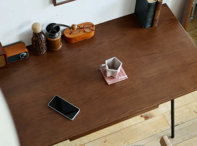 「自宅で仕事をするとなんだかデスクがゴチャッとする」と感じませんか?オフィス用のデスクは作業スペースが広くとれるように、一般用のデスクよりも広い面積で作られているんです。ただ同じサイズ感のデスクをお家に置くとどうしても圧迫感が出てしまいます。こちらのデスクは奥行き60cmで省スペース。コンパクトですが、意外とたくさんのものを置くことが出来ますよ。
