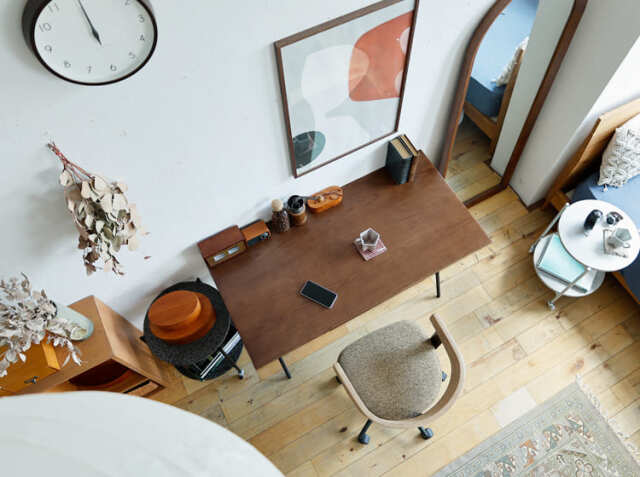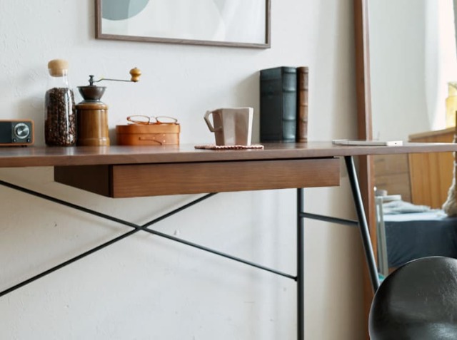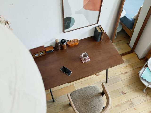 在宅ワークがはかどるかどうかは、快適な作業場を作れるかがポイントに。でも、いくら作業がしやすいデスクであっても、今のインテリアの雰囲気に合わないものは置きたくないですよね。またスペースを取り過ぎてしまうと、お部屋に圧迫感が出てしまいますので、サイズ感も結構大事。こちらのデスクは幅120cm×奥行き60cmサイズ。お部屋には意外とデッドスペースになりがちな場所がちらほら。壁際は特に有効に使えばお部屋の中がすっきりとした印象に。そんなデッドスペースをおしゃれに有効活用するスリムなデスクでお気に入りのワークスペースをつくりませんか。