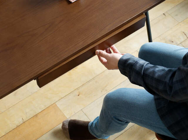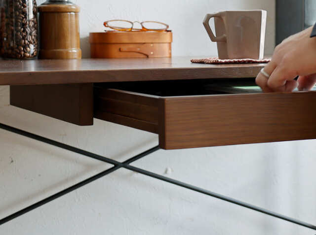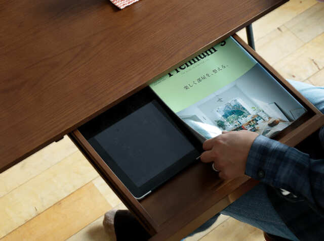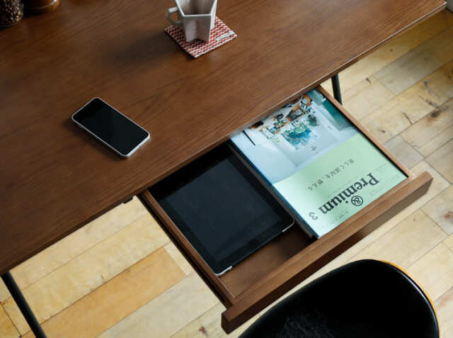 書斎やワークスペースの小物を収納するのに便利な引出しは、雑多に散らかりやすい文具などを収納したりするのにとても便利♪