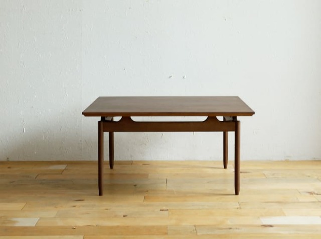 幅75cmの正方形のセンターテーブル。オーク材を使用した温かみのある雰囲気が特徴。意匠にもこだわり、幕板部分を造作加工することで天板が宙に浮いているような見た目に仕上げています。