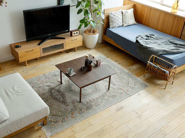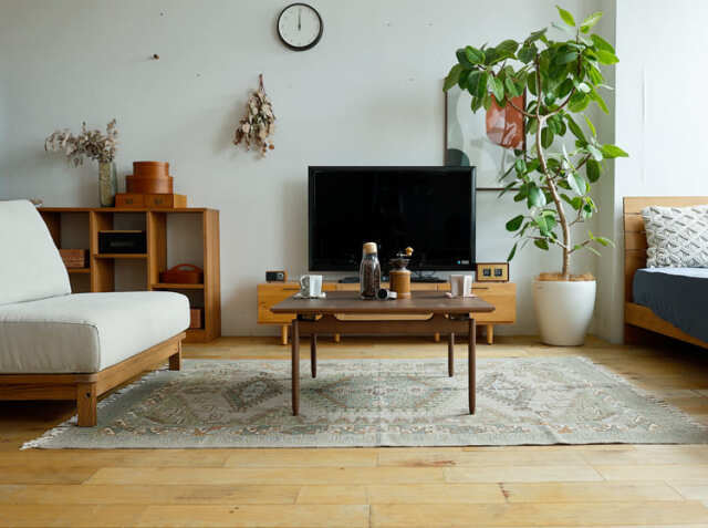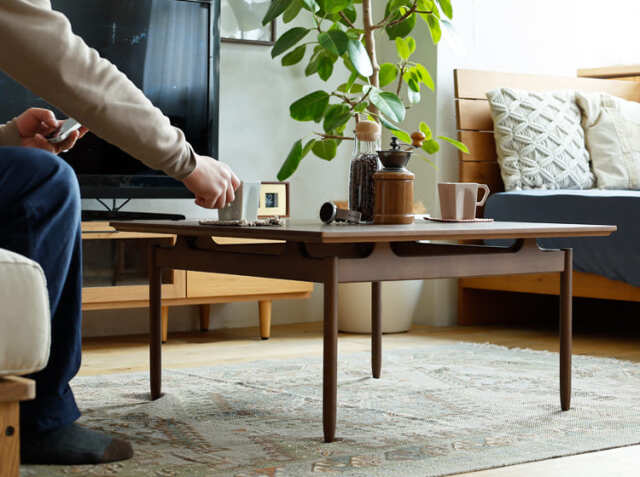 ちょっとした作業をしたいときや来客時にテーブルが足りないときなど、いろいろな用途で活躍してくれるのがセンターテーブルです。ナチュラルな風合いのテーブルは、畳のお部屋はもちろんのこと、フローリングやカーペットの洋室にも似合いそうですね。