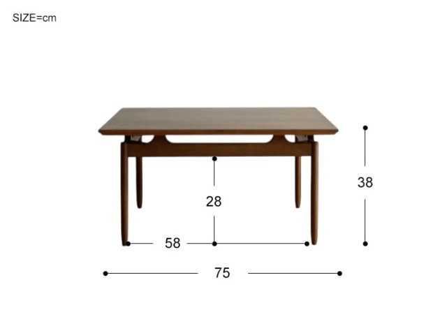 天板のサイズは幅75cm。1人から2人で使うのにはピッタリのサイズ。床から天板までは38cmとなっています。ソファーに座りながらのご使用や、ラグなどの上に座ってのご使用にもピッタリのサイス感は嬉しいポイント♪ナチュラルな北欧テイスト系のお部屋にピッタリとなっていますよ。