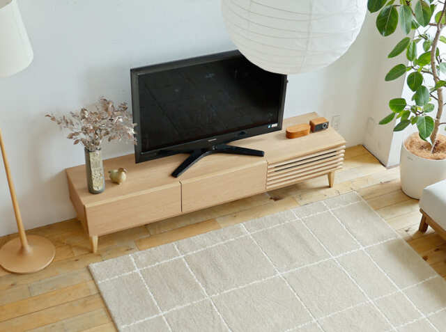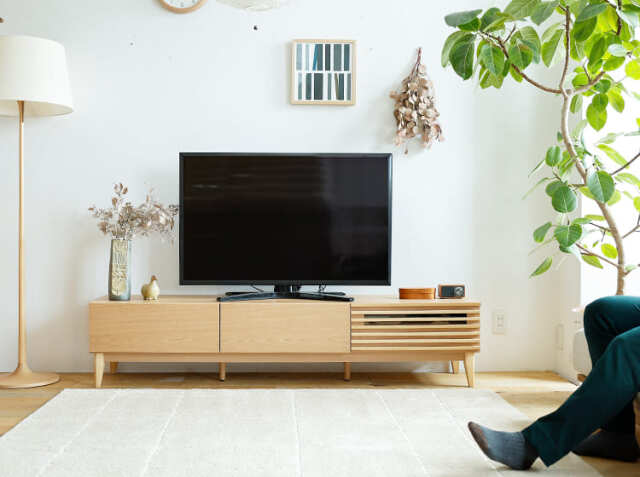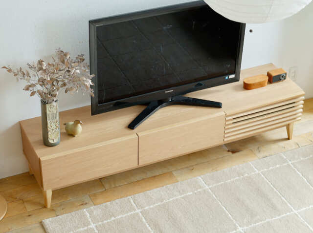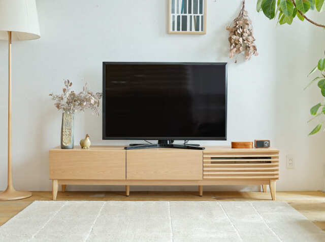 天然木アッシュをふんだんに使うことで温かみを感じる北欧デザインに仕上げた幅180cmのテレビボード、Luutte(ルッテ)。