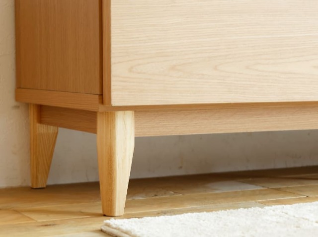 奥行きは42.5cmと標準的なサイズ設計にしていますので、お部屋に置いた時の圧迫感を軽減してくれます。また天板にもアッシュ材の突板を採用していますので天然木の木目がナチュラルさを感じさせてくれますのでお気に入りの雑貨などを置いてディスプレイを楽しむこともできますよ♪
