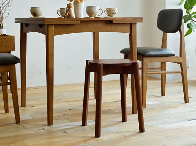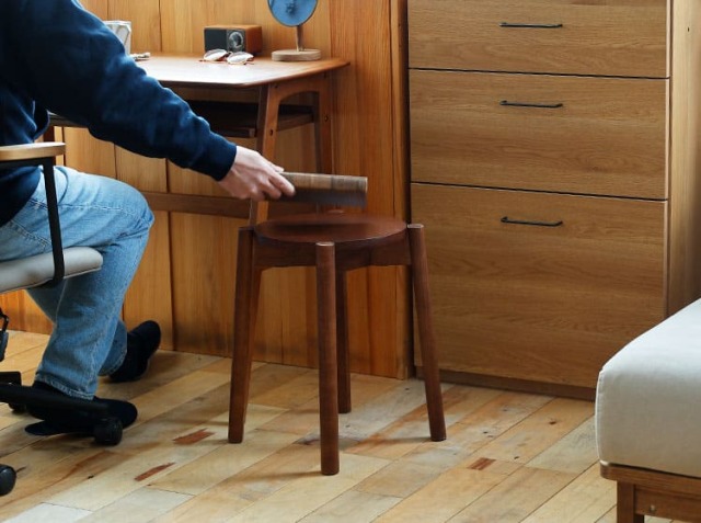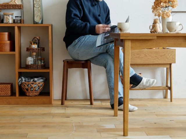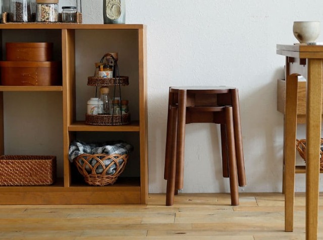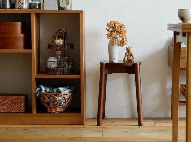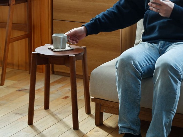 例えば、急な来客時でもサッと食卓に配置して座る場所を確保できたり、ソファーのそばに置いてサイドテーブル代わりに使ったり、ベッドのそばに置いて目覚まし時計やスマホなどを置くナイトテーブル代わりに使ったり、玄関に置けば、靴やブーツなどを履くときにも活躍するお家のいたる所で活躍するアイテムがスツール♪