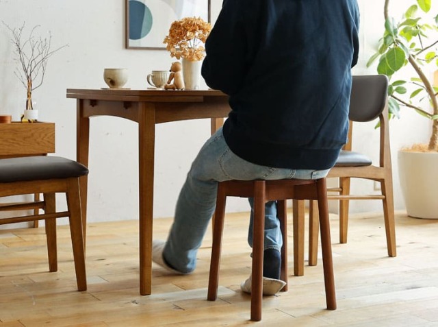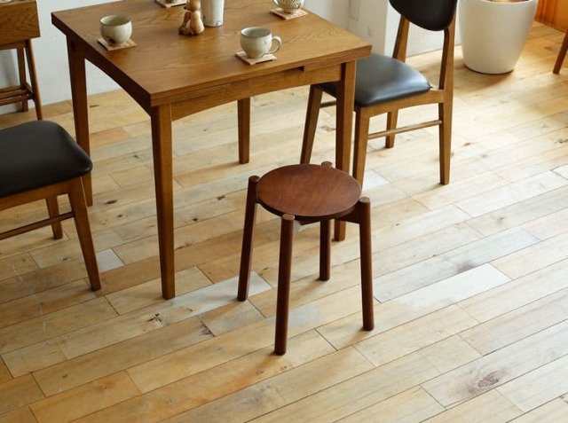 座面高は44.5cm。ドレッサーやデスクで使うイス代わりや、ダイニングでのご使用もおすすめです。視線を遮る、背もたれが無いので、スペースを広く見せる効果があるのも特徴。