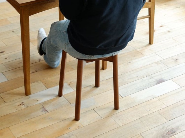 リビングやキッチン、エントランスなどに置いておあるとふと座ってしまいそうな温かみを感じるスツール。大人の男性が座っても十分のある幅30cmとなっています。
