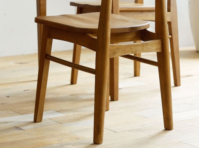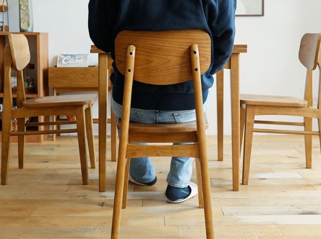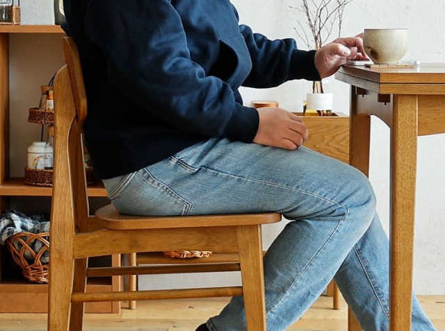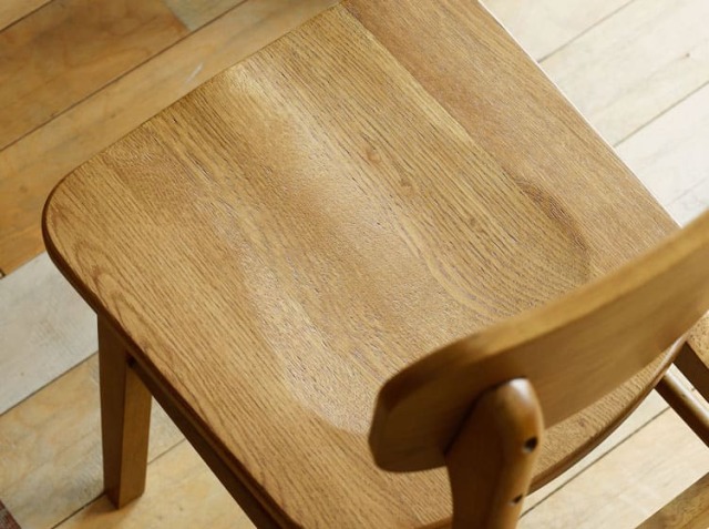 板座って、座っているとお尻が痛くなる印象ってないですか?個人差はあるかもしれませんので、チェアパッドなどを敷くのもいいですがこちらのチェアはオーク材の木目がすごく素敵な印象ですので、何も敷かずそのままのご使用をおすすめします♪実際に座ったときに感じるのは、窪みがついていることによるフィット感があるところがおすすめポイントです。