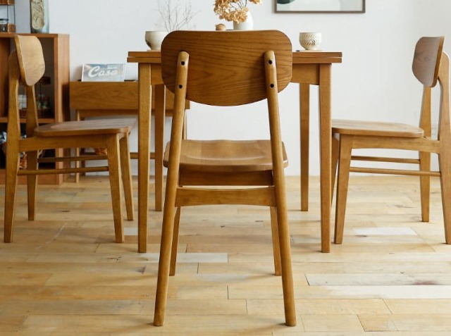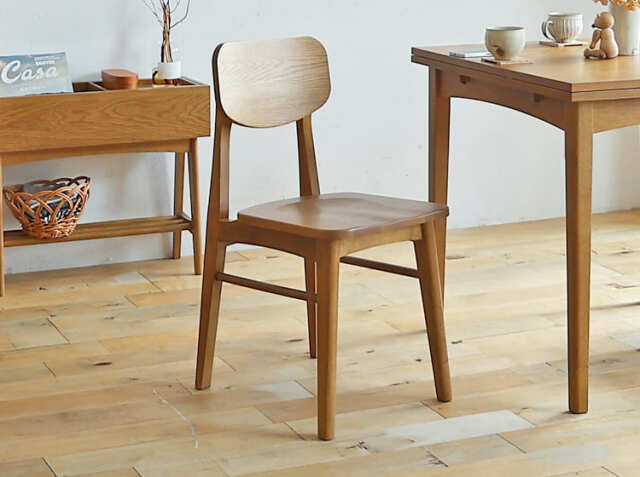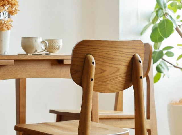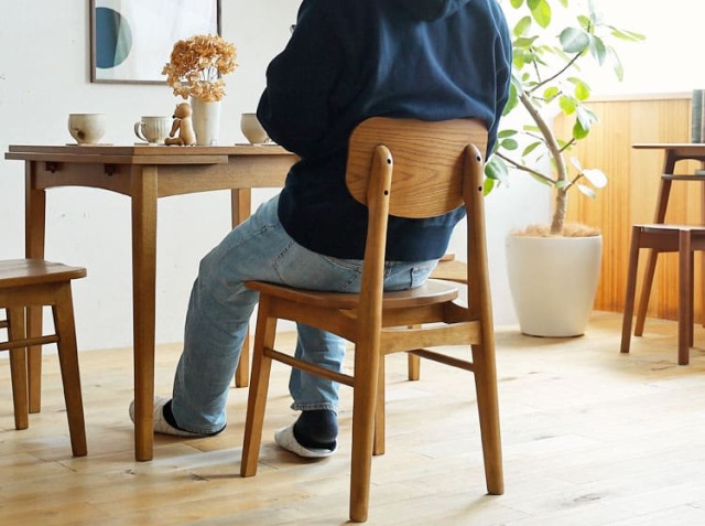 家族やお友だちが集まる食卓。会話をしながら、お食事をしたり、珈琲を飲んだりと楽しく過ごす場所を、天然木の優しい雰囲気が漂うダイニングチェアで北欧テイストの空間をつくりませんか? こちらのダイニングチェアは、シンプルなデザインながら座ったときにくつろげるように座面に窪みがつけられていたり、背もたれ部分が体に沿うように弧を描いていたりと、座り心地にこだわった設計がなされているんです。