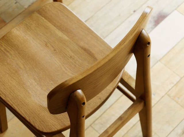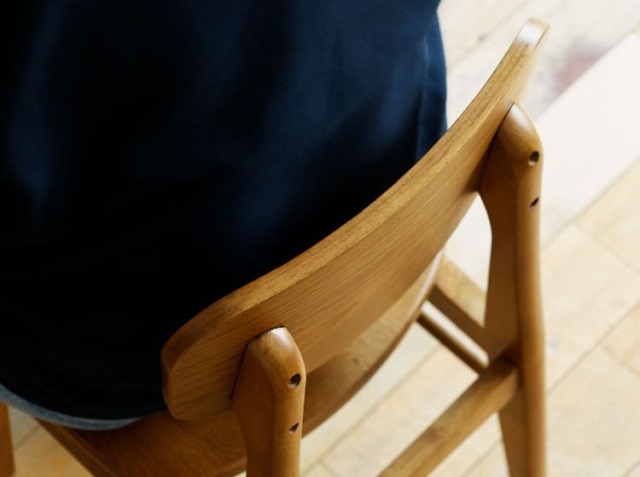 座ったときに膝裏あたりが痛くならないように座面の側面を丸く面取り加工が施されていたりと座り心地にこだわった、細やかな工夫がつまったチェアとなっています。