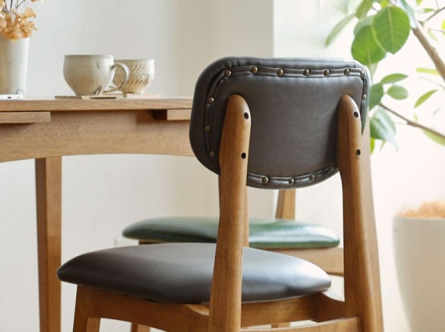 家族やお友だちが集まる食卓。会話をしながら、お食事をしたり、珈琲を飲んだりと楽しく過ごす場所を、お気に入りのダイニングチェアで落ち着いたモダンな雰囲気の空間をつくりませんか?レザーは、あえてシワのような質感を施すことで、本革のような風合いを表現しており、ヴィンテージやラスティックなインテリアによく馴染みます。