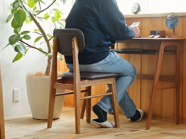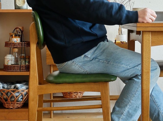 日本の住宅環境を考慮し、一般的なダイニングチェアよりも奥行きを約2cm小さく設計されています。これにより、ダイニング空間での圧迫感を軽減し、狭い場所でも快適に設置できます。 奥行きが抑えられているため、立ち上がり時の動作が楽になり、膝や腰への負担が軽減されますよ。