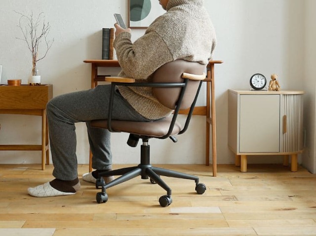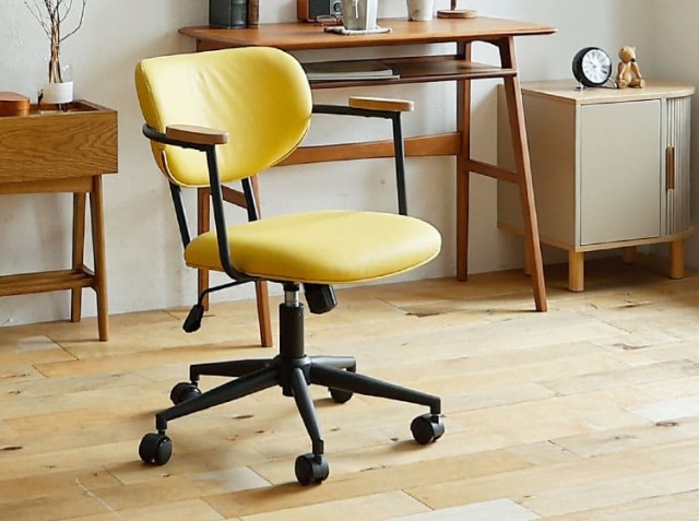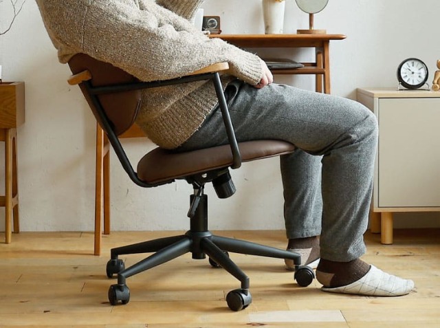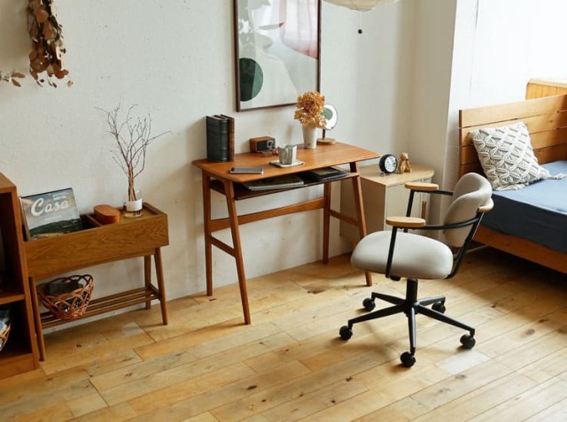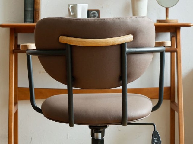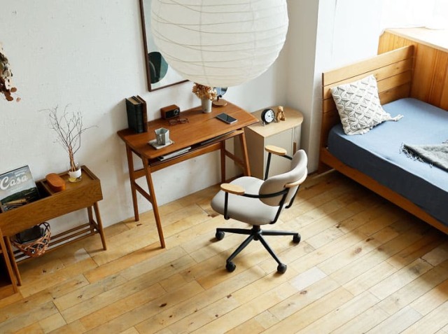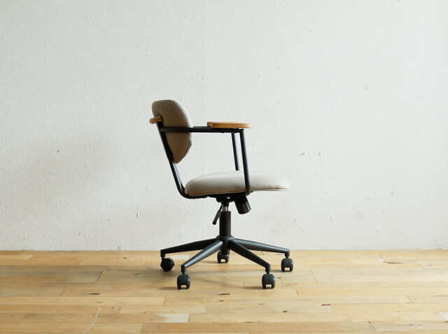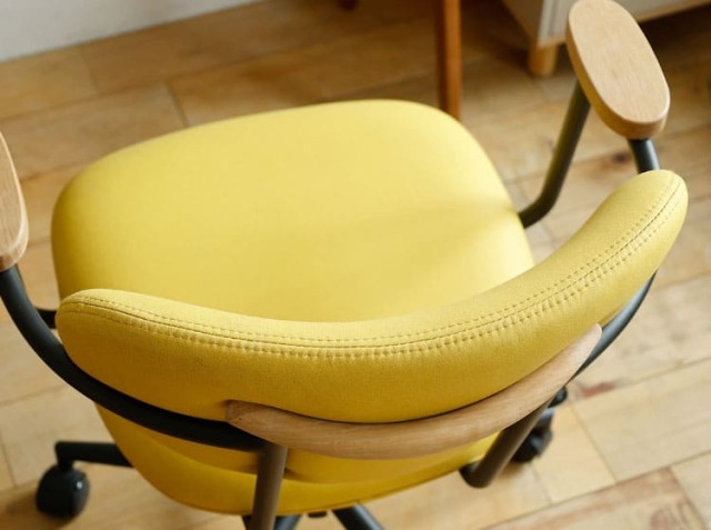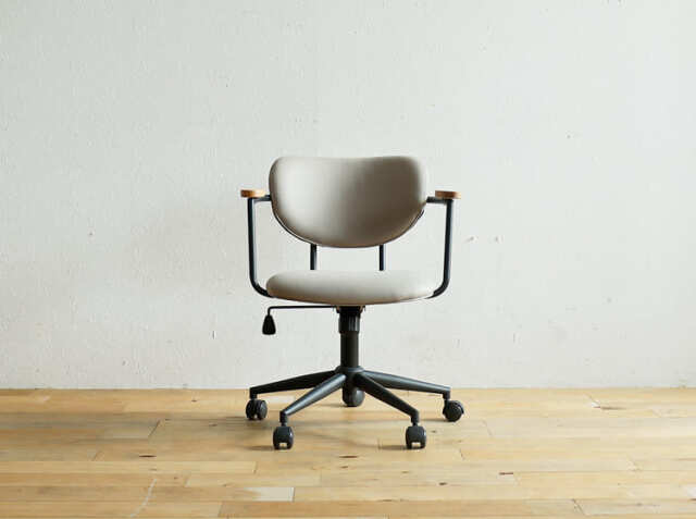 パソコンなどのAV器具や書類などに囲まれ、無機質なイメージになりやすい書斎やワークスペースを一新してくれるのがこちらのチェア。オーク材、ファブリックとスチールの異素材を組み合わせることで上質で洗練されたフォルムが、書斎やワークスペースをセンスアップしてくれるチェアですよ。