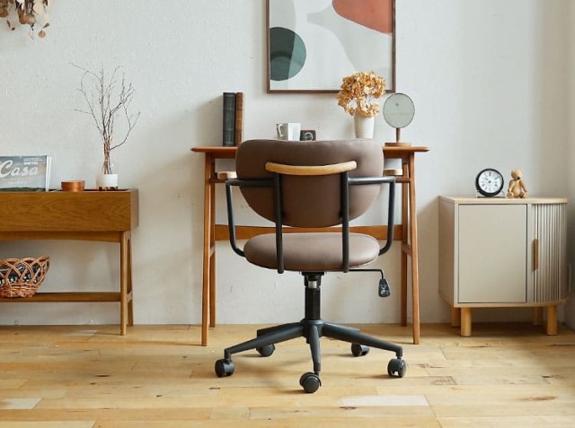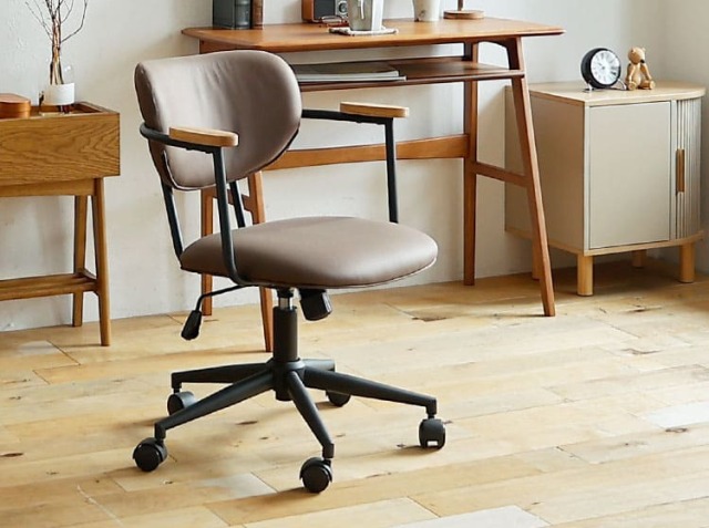 ミッドセンチュリーやモダン、レトロテイストなお部屋などにあわせてコーディネートすることで、落ち着いたワンランク上の印象のスペースを作り上げてくれるブラウンカラー。 実用性とデザイン性を両立した、落ち着きあるレトロザインのデスクチェアですよ。