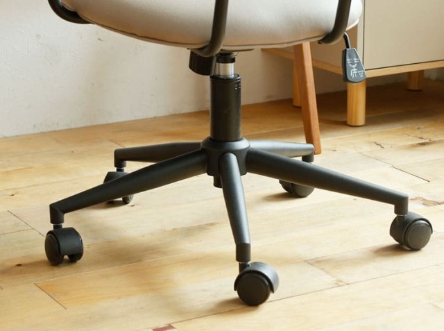 5つ付いているキャスターは、全方位で移動ができますので、椅子に座っているときに下がったり、前に行ったり、書棚に手を伸ばして資料を取るときなどにとても便利ですよ。