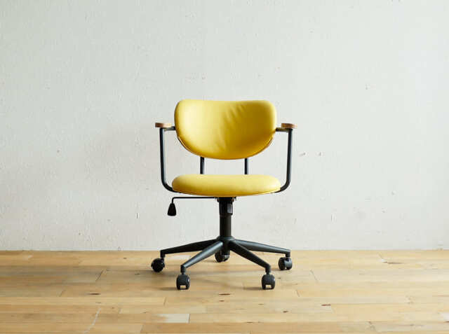 ヴィンテージとモダンが融合した「大人の遊び心」を感じさせてくれるデスクチェア、Bukke(ブッケ)。温かみのあるオーク無垢材を背もたれ部分と肘置き部分に使用し、無機質で力強いブラックスチールの脚部との組み合わせが洗練された印象を感じさせてくれます。カラーは、イエロー・グレ―・ブラウンの3色からお選びいただけます。