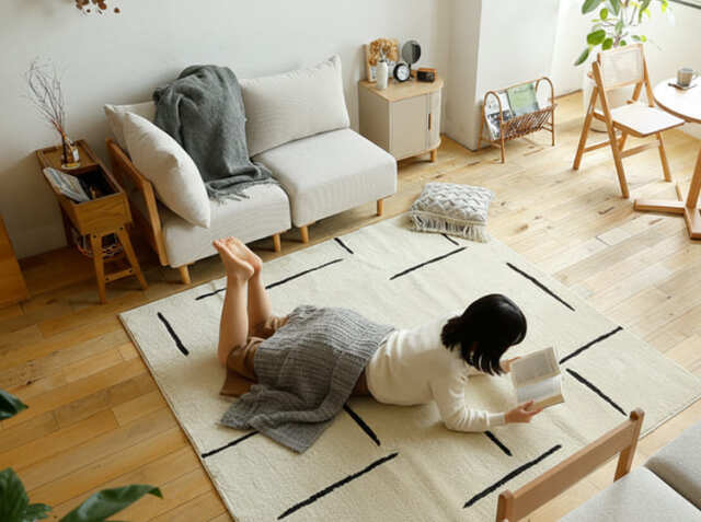 折り畳み可能なラグマットですのでコンパクトにクローゼットなどに収納することが可能です。夏は涼しげな素材や明るい色のラグマット、冬は温かみのある素材や落ち着いた色のラグマットと使い分けることで、インテリアに季節感を演出できます。使わない時期はクローゼットにコンパクトに収納できるため、複数枚所有しても場所を取りません。