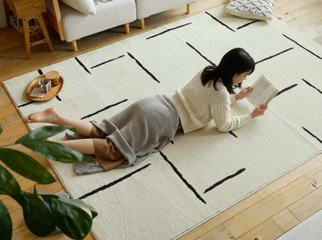 シングルベッドやセミダブルベッドのサイドに敷くと、ベッドの長さとほぼ同じになり、バランスの良い配置が実現します。朝起きた時に素足で踏む部分を柔らかくカバーし、寝室に快適さと高級感をプラスします。冬場の冷たいフローリングから足を守ります。