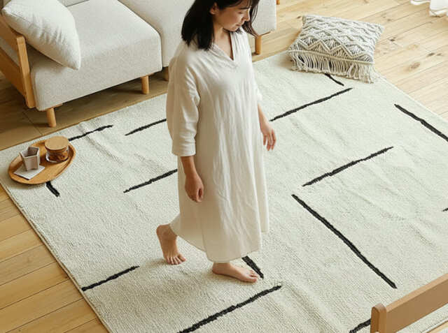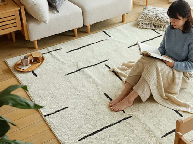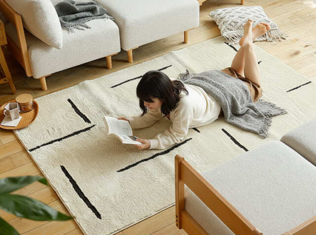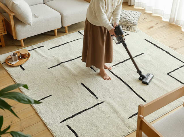 遊び毛が出にくいラグマットの最大のメリットは、何といっても日常的なお掃除の手間が大幅に軽減されることです。「遊び毛」が発生すると、掃除機をかけても次々と毛が出てくるため、頻繁な掃除が必要になります。こちらのラグマットは遊び毛が出にくい仕様となっていますので、掃除機をかける頻度を減らせるだけでなく、一回の掃除時間も短縮できます。特に共働き家庭や小さなお子さまがいるご家庭では、この時短効果は大きな価値がありまよね。