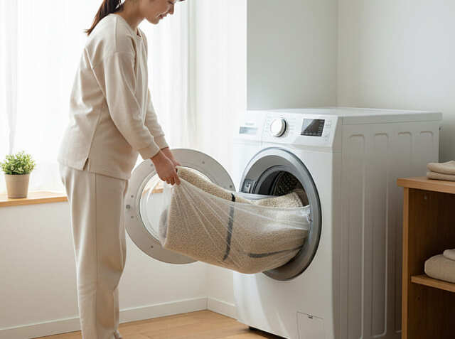 洗濯時は、ラグマットを洗濯ネットに入れるか、折りたたんで洗濯機に入れます。洗剤は中性洗剤を使用し、脱水後は、形を整えて陰干しするのが基本です。直射日光に長時間当てると、色褪せや素材の劣化を招く可能性があるため、風通しの良い日陰で干すことをおすすめします。