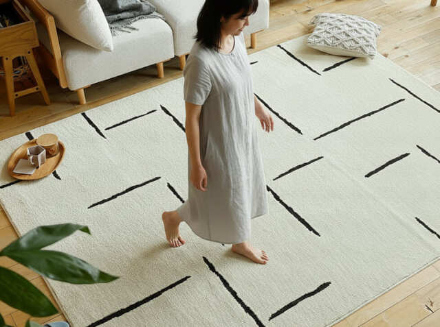 遊び毛が出にくいラグマットの最大のメリットは、何といっても日常的なお掃除の手間が大幅に軽減されることです。「遊び毛」が発生すると、掃除機をかけても次々と毛が出てくるため、頻繁な掃除が必要になります。こちらのラグマットは遊び毛が出にくい仕様となっていますので、掃除機をかける頻度を減らせるだけでなく、一回の掃除時間も短縮できます。特に共働き家庭や小さなお子さまがいるご家庭では、この時短効果は大きな価値がありまよね。