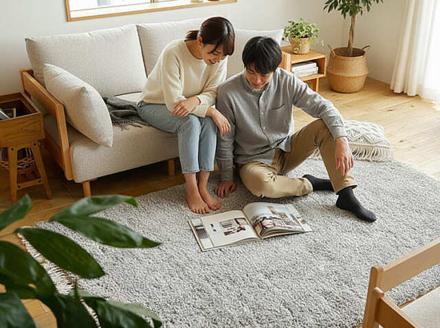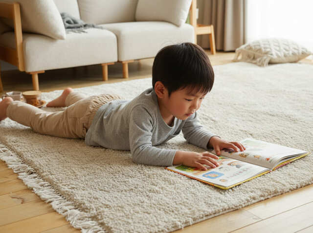 ふかふかのラグマットの上でくつろぐ時間は、心に余裕をもたらしてくれます。仕事や家事で忙しい日々の中で、自宅に帰ってきた時に感じる心地よさは、ストレスを軽減し、リラックスできる時間をもたらしてくれます。家族みんなが自然とラグマットの上に集まり、会話が弾む。そんな温かな時間が、暮らしの中に生まれますよ。