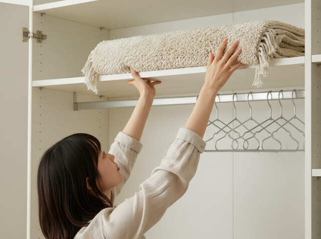 折り畳み可能なラグマットですのでコンパクトにクローゼットなどに収納することが可能です。夏は涼しげな素材や明るい色のラグマット、冬は温かみのある素材や落ち着いた色のラグマットと使い分けることで、インテリアに季節感を演出できます。使わない時期はクローゼットにコンパクトに収納できるため、複数枚所有しても場所を取りません。