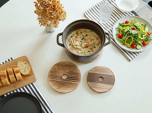 日本の伝統技術が生み出す、美しく機能的な食卓の道具、LOLO鍋敷き 丸(穴あきタイプ)