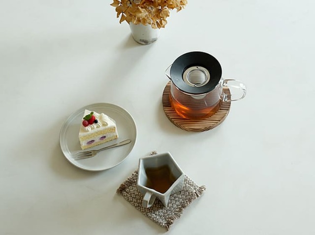 コンパクトなサイズ感は、テーブルの上で場所を取らず、複数枚を並べて使うこともできます。来客時には、それぞれのゲストの前に置いて、個別のティーポットやカップを置く台としても使えます。