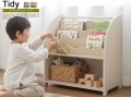 お子さまの「自分でできた!」を育む、北欧デザインのキッズブックシェルフ Tidy(ティディ)。カラーはベージュとグレーの2色からお選びいただけます。