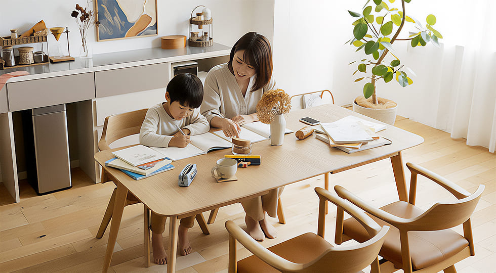 【新商品】脚間の幅まで変わる伸長式ダイニングテーブル