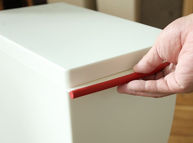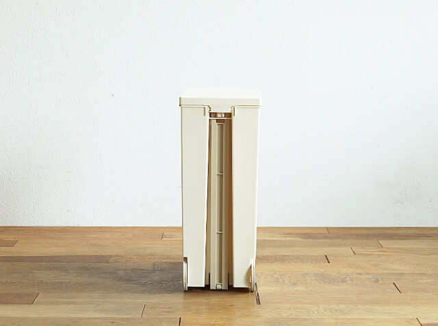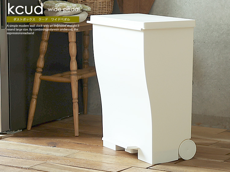 少ないスペースに置けるスリムタイプ。ペダル式で開閉もラクラク。キャスター付きで移動もスムースなペダル式ダストボックス、kcud(クード)スリムペダル。