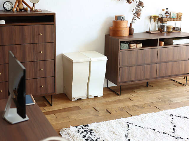 キッチンや洗面所などの水回りだけでなく、リビングやダイニングのゴミ箱として置いても様になるデザインです。