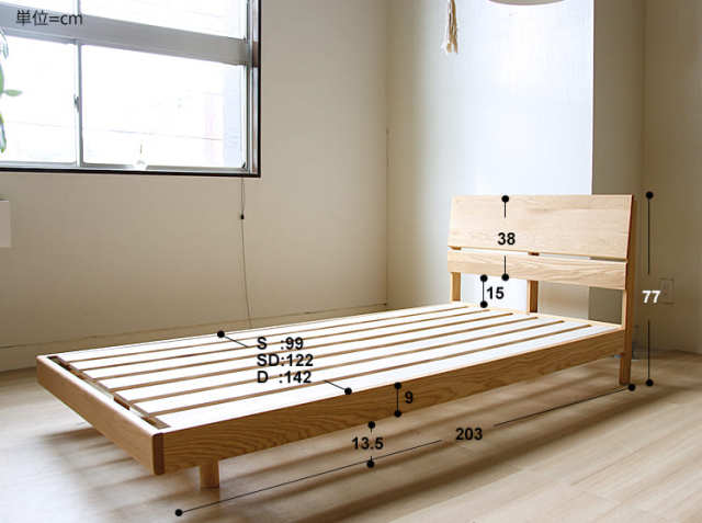 ダブル:幅 142cm × 奥行き 203cm × 高さ 77cm