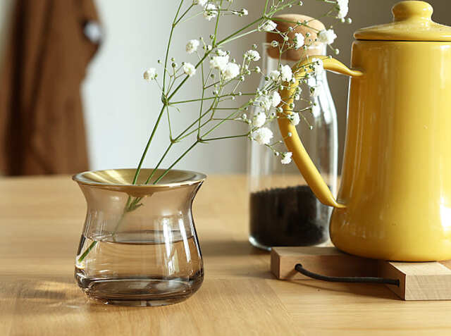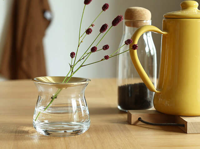 真鍮とガラスを組み合わせた花器で毎日の暮しに彩を。