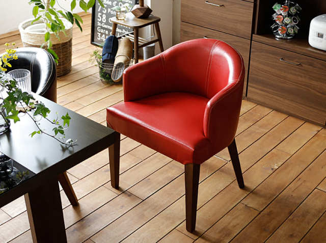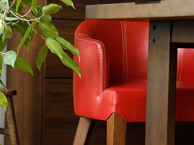 お好みやお部屋のテイストの合わせて、レッド、ブラック、キャメル、アイボリーの4色からお選びいただけます。座面までの高さは47cmと標準的な高さとなっていますので、大人の男性の方でもストレスなくお座り頂けます。座面の奥行きも深々と座ることができる43cm。毎日の食卓シーンを考えて設計されたチェアとなっています。