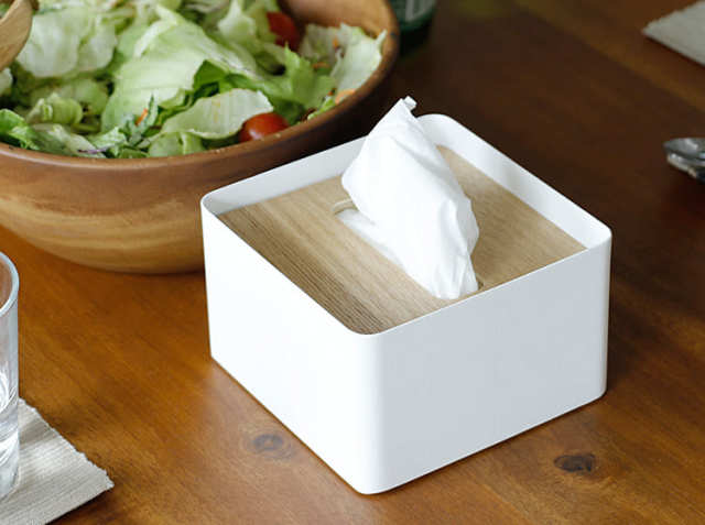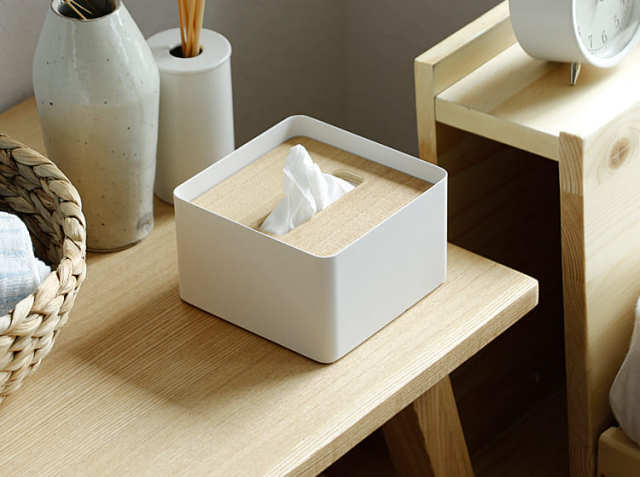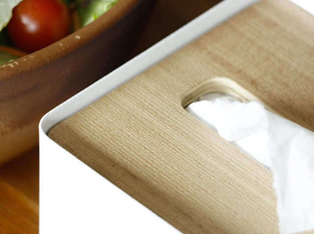 お部屋の中で生活感が出てしまいがちなティッシュ箱。インテリアを整えても、ティッシュ箱ひとつで雰囲気が変わってしまいそう。おしゃれなティッシュケースが欲しいし、見た目にもこだわりたい、そんな方におすすめ!スチールに温もりをプラスしてくれる天然木を使ったフタが、お部屋をやさしく包み込んでくれる素敵なティッシュケースとなっています。