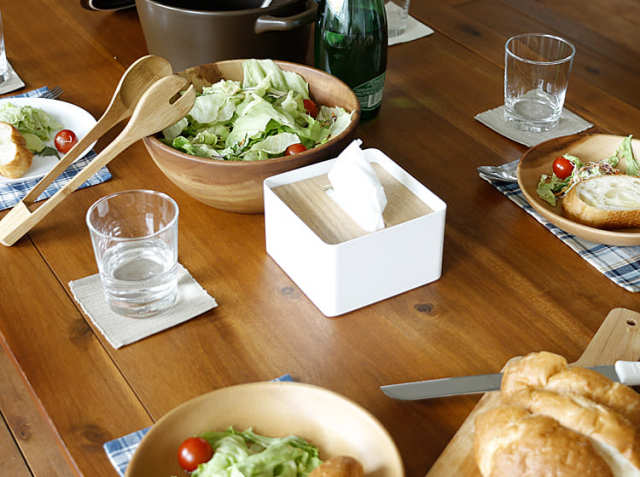 家族やお友だちが集まりワイワイとお食事をしたり、お茶をしたりするダイニング。そのテーブルの上には、色とりどりのお食事が並びます。その横に生活感がでてしまいがちなティッシュの箱ではなくこちらのデザイン性の高いケースを置くだけでテーブルの上が綺麗な印象になりますよ。