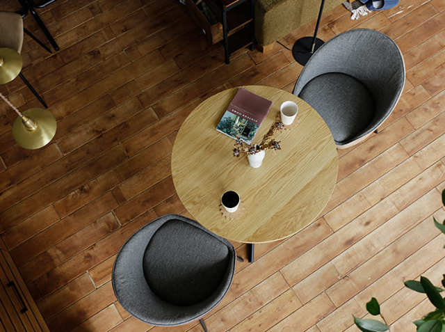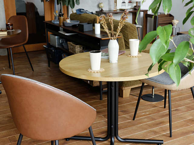 木目が綺麗なオーク材を使ったカフェテイストの円形ダイニングテーブル、Danz(ダンズ)。