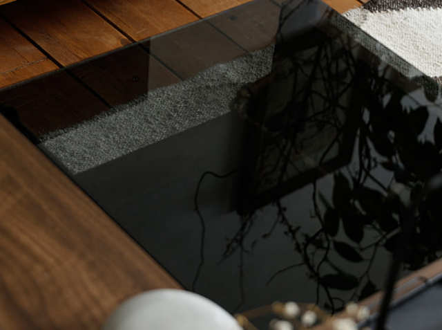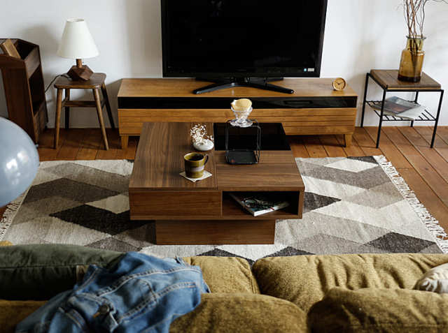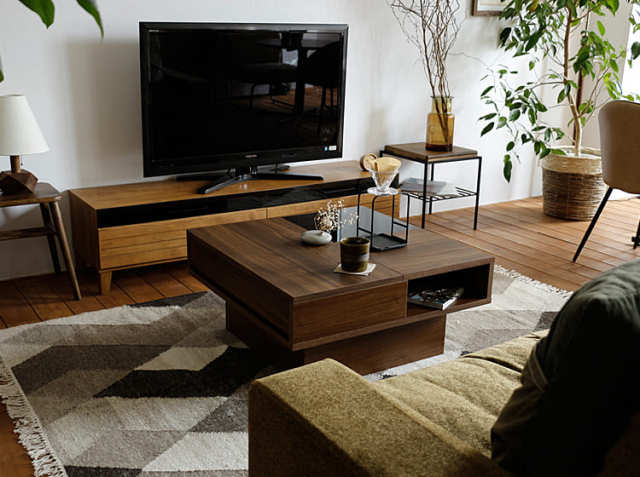 ワンポントのダークグレーガラスがアクセントになっていて、置くだけでリビングの主役になってしまうセンターテーブルです。