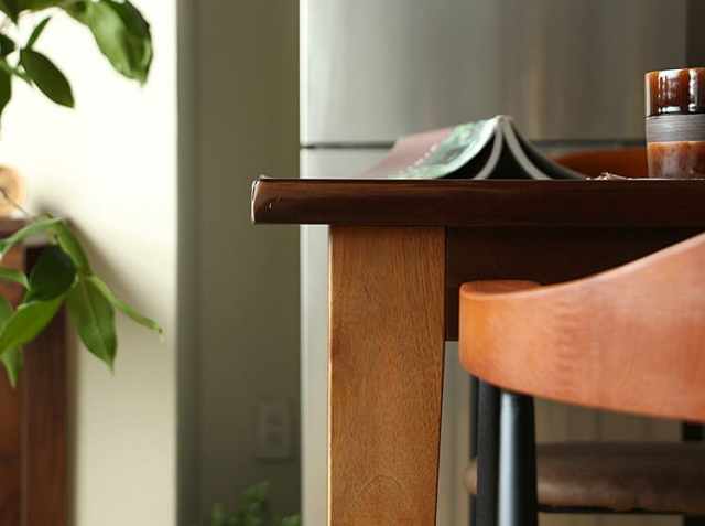 また小さなお子さまがおられるご家庭ではお気づきかもしれませんが、ダイニングテーブルの天板部分は子供の顔の高さになってしまいがち。こちらのダイニングテーブルは丸みをつけていますので、安心してご使用いただけるのもポイントですね。