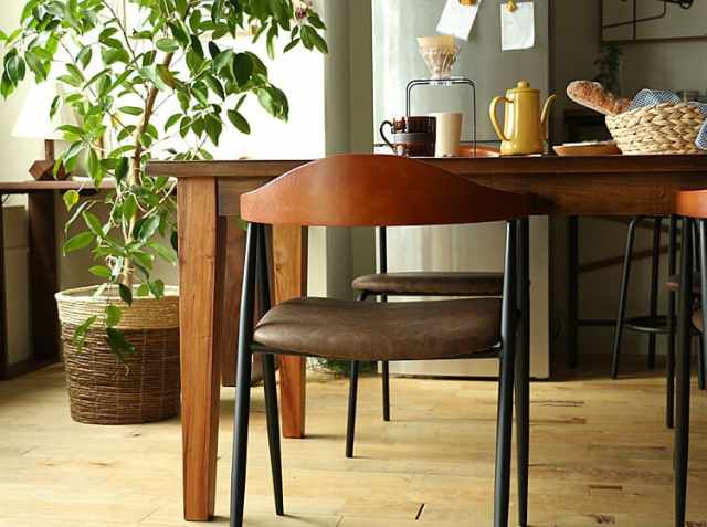 スタイリッシュなハーフアームデザインを採用したひじ掛け部分が特徴のダイニングチェア。天然木ビーチを背もたれとひじ掛け部分に使用し、天然木の温かみを感じながら、フレームのブラックスチールと座面のソフトレザーとの組み合わせがモダンな印象を空間にもたらしてくれるダイニングチェア2脚セット、RAKASA(ラカス)Aタイプ。
