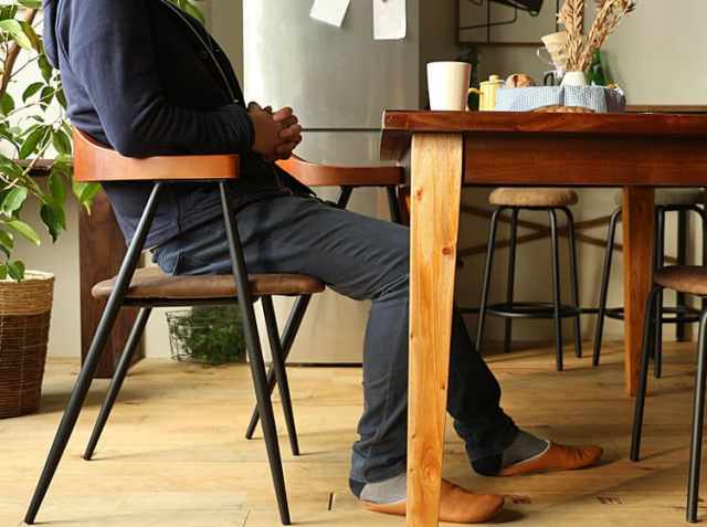 横から見た時の佇まいもおしゃれな肘掛け部分は、出入りしやすく、立ち座りしやすいハームアームタイプ。ダイニングテーブルへの収まりが良いので、限られた食卓の空間にもおすすめ♪広めの背もたれは座ったときに包み込まれるようなホールド感がありますよ♪