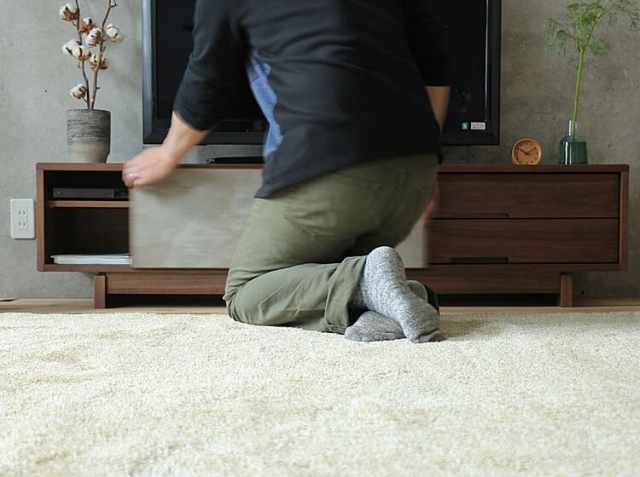 開閉がスムーズなスライド扉。たっぷりの収納力でAV機器などの収納やリビングの小物などをきれいに整理整頓♪スムーズに開閉できるように、扉には隠し車輪がついているのも特徴ですよ。