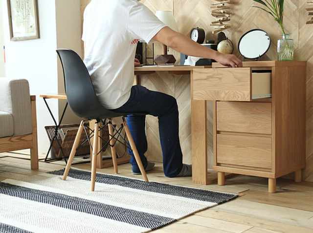 仕事をしたり、本を読んだり、勉強をしたり、そんな自分だけの空間「書斎」 。無垢材の味わい深い表情のチェストは時間をかけて使い込むほどに愛着がわいてきます。シンプルな北欧スタイルで、素材感が際立つワークスペースはいかがですか。
