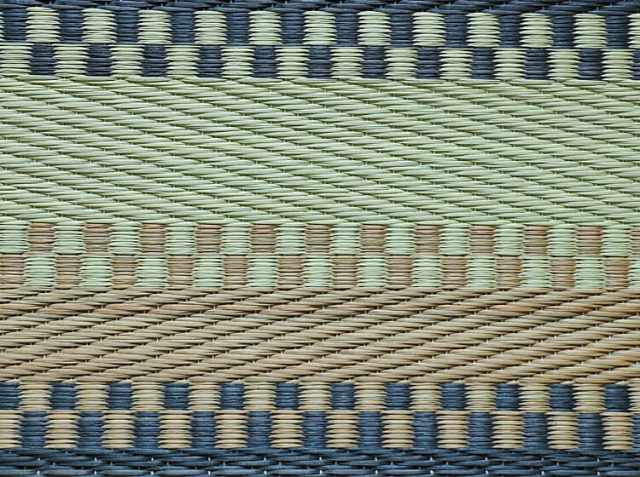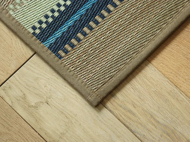 IGUSA RUGの色柄はプリントではありません。伝統の技術「先染め」によるもの。そこに生成り色が加わることで味わい深く、そして奥行きのあるデザインに仕上がっています。