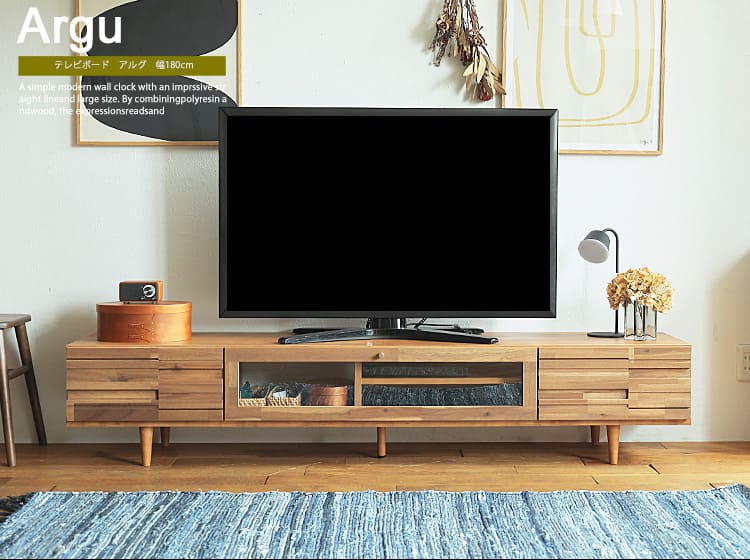 ヨーロッパのアンティーク家具のような味わい深いレトロテイストのデザインが特徴のローボードGarba(ガルバ)120cmタイプ。素材には高級家具や楽器などにも使われる天然木ミンディ材を使い、天然木の家具ならではの温もりや、使い古されたような風合いが、ほっこりとしたリラックス空間を演出してくれます。※上記画像のテレビサイズは45型。